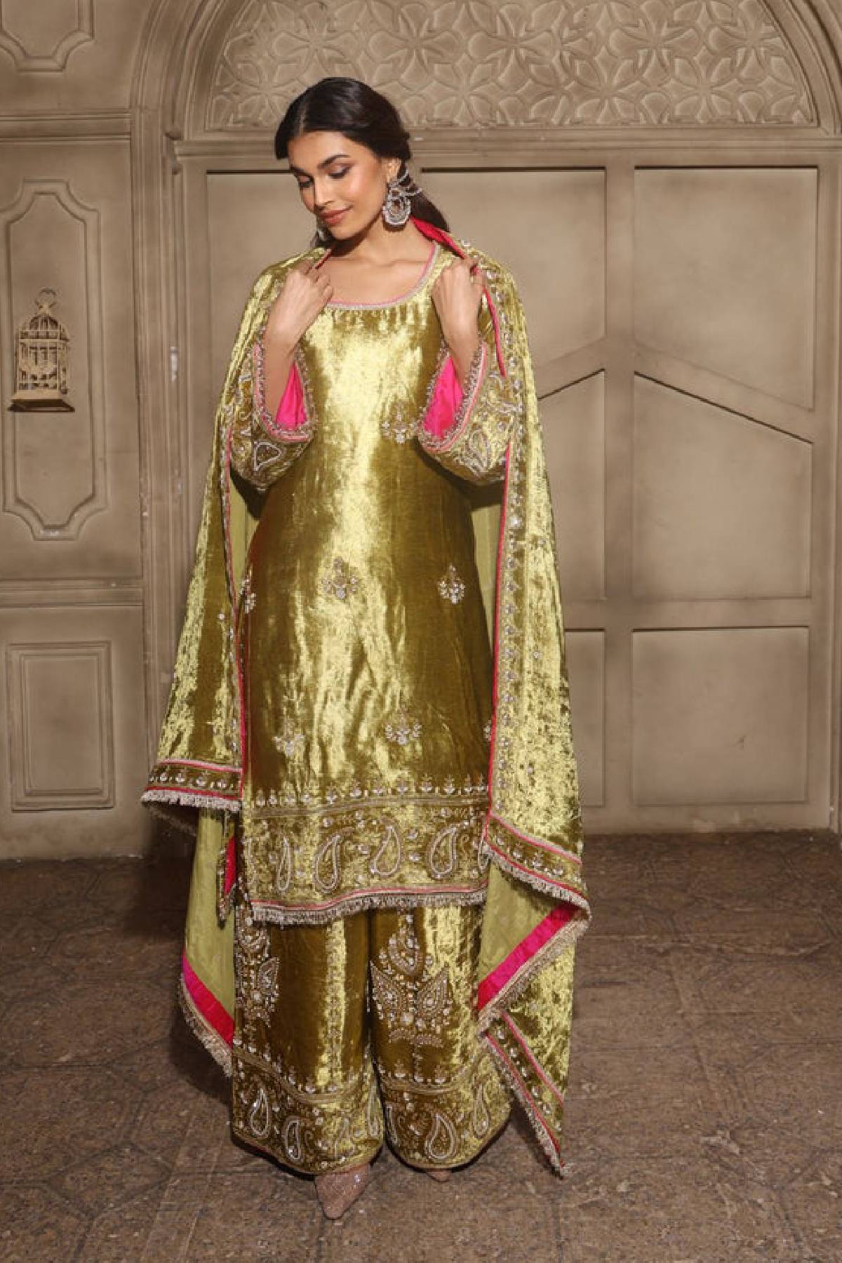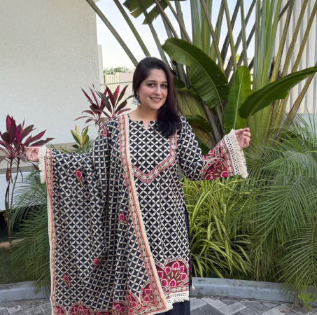 Grace meets grandeur in our ZehnÉNoor Ensemble, a timeless piece that celebrates minimal elegance with royal undertones. Crafted in luxurious viscose muslin fabric, this kurta features an exquisitely embroidered neckline and delicate lace detailing all over, lending it an aura of refined femininity.