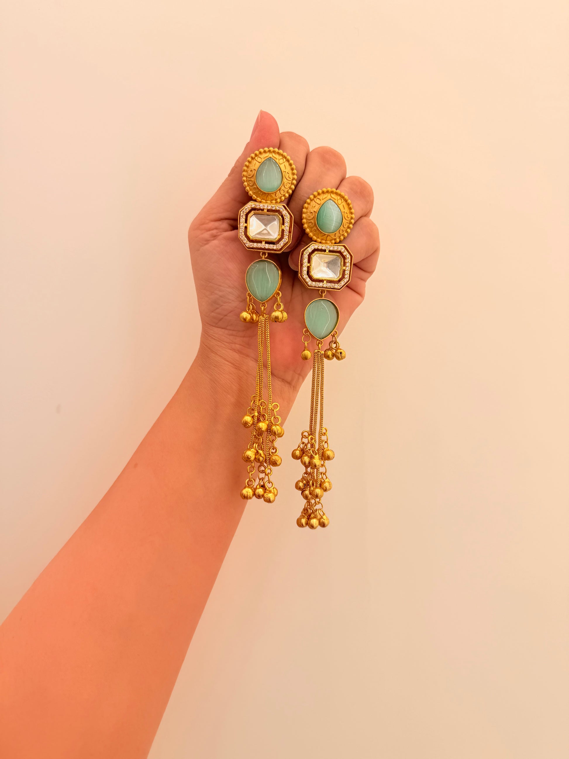 - Handle with care — the chains, pearls, and enamel work are delicate and crafted to perfection.