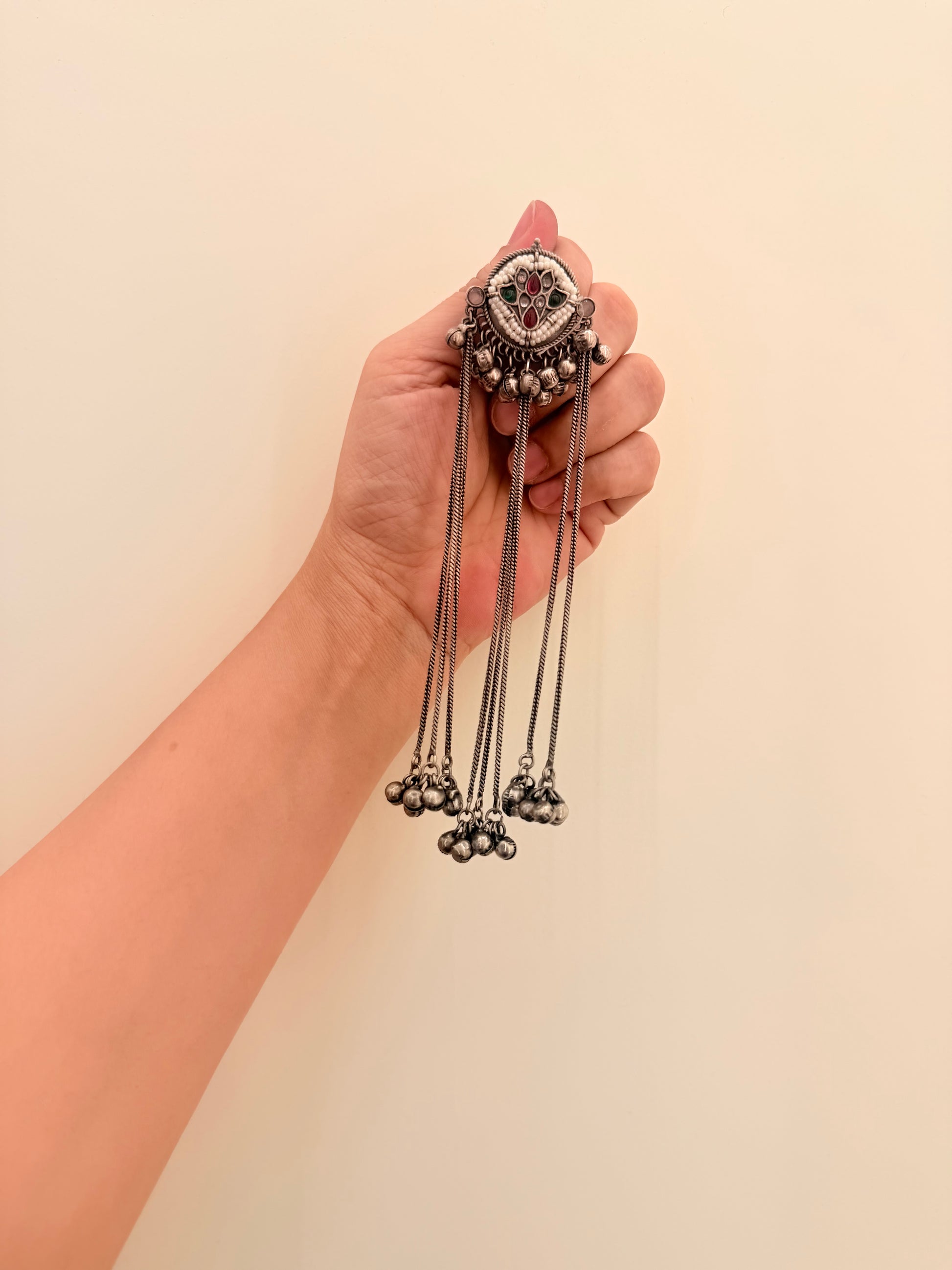 - Handle with care — the chains, pearls, and enamel work are delicate and crafted to perfection.