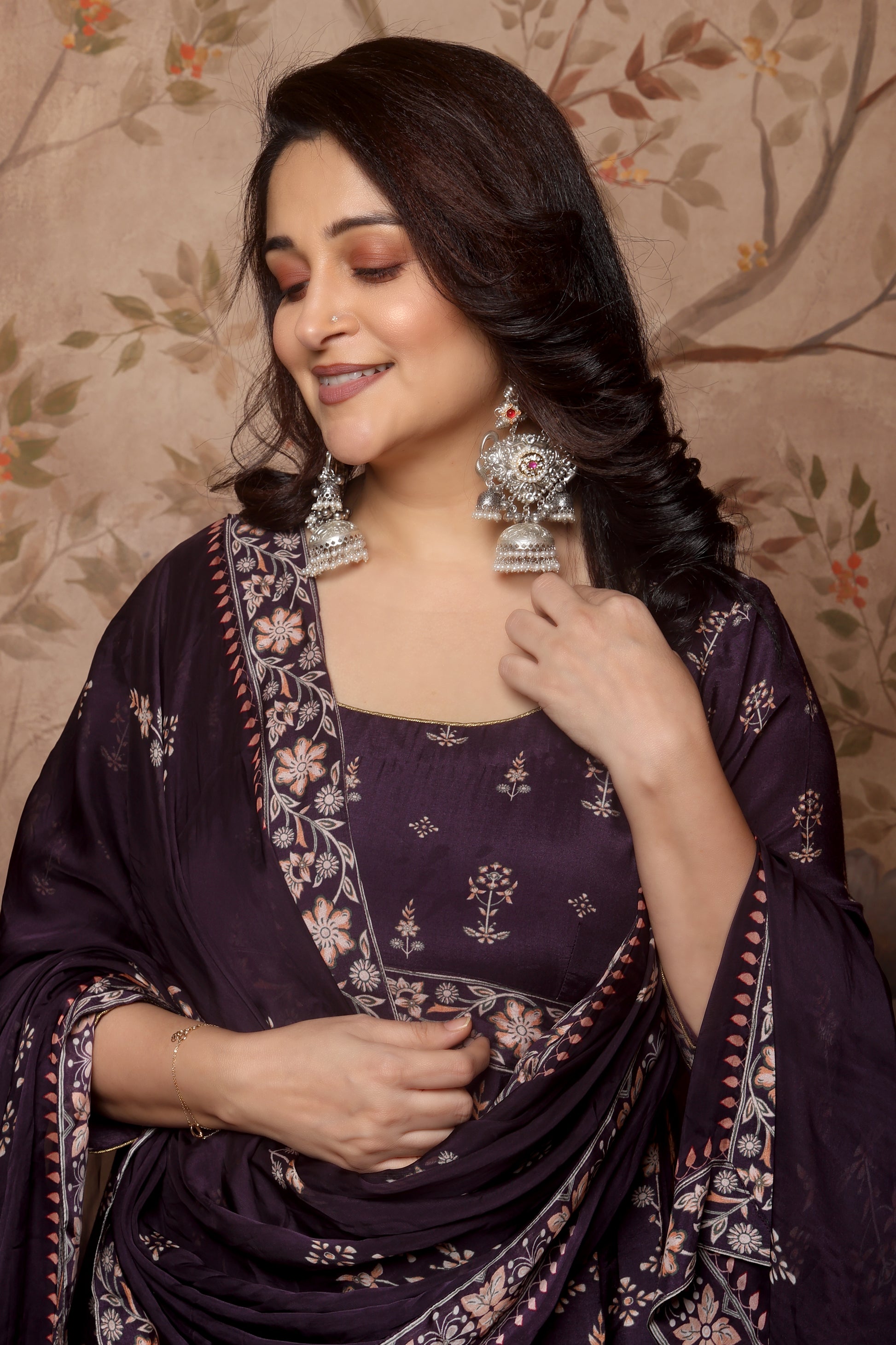 Style Note:The Raabta Royale Set is a celebration of craftsmanship and grace. Pair it with oxidised silver or antique gold jewellery to elevate the regal plum tones and intricate detailing.