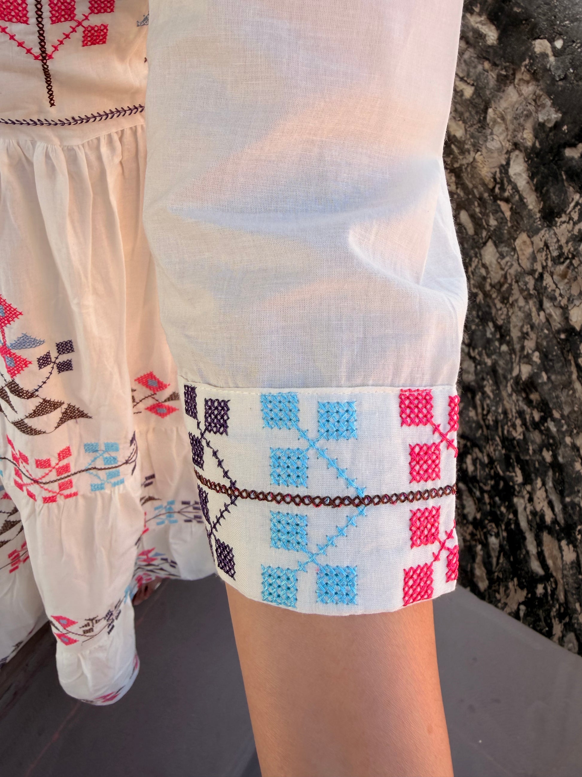 • Ironing: Warm iron on the reverse side of the embroidery. Do not iron directly on the lace trimmings.