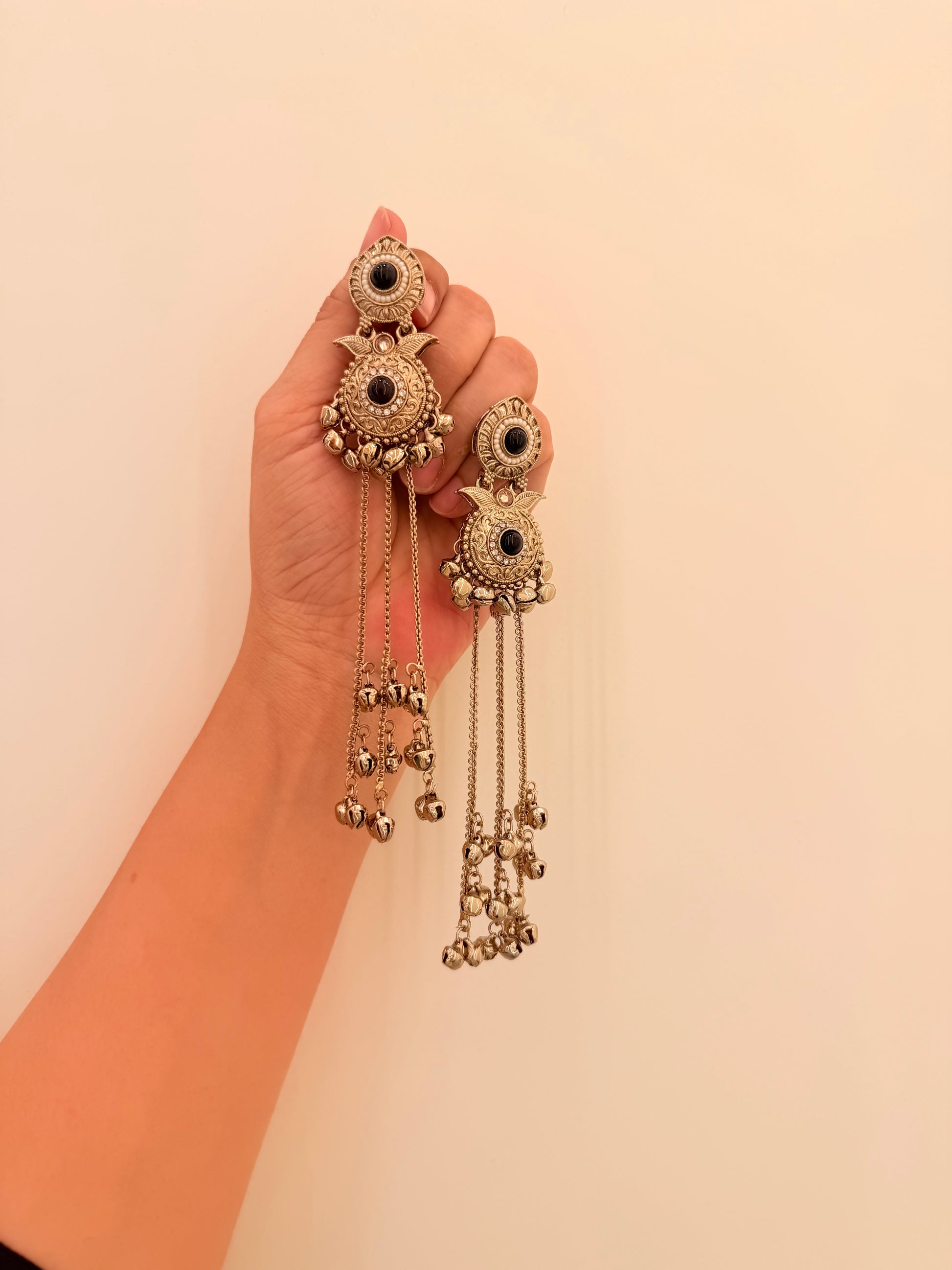 Contemporary yet timeless, Zyreen embodies delicate craftsmanship and fluid elegance. The intricate circular motif with cascading chains and soft metallic tones creates a look that’s graceful, versatile, and effortlessly striking — perfect for both festive and modern ensembles.